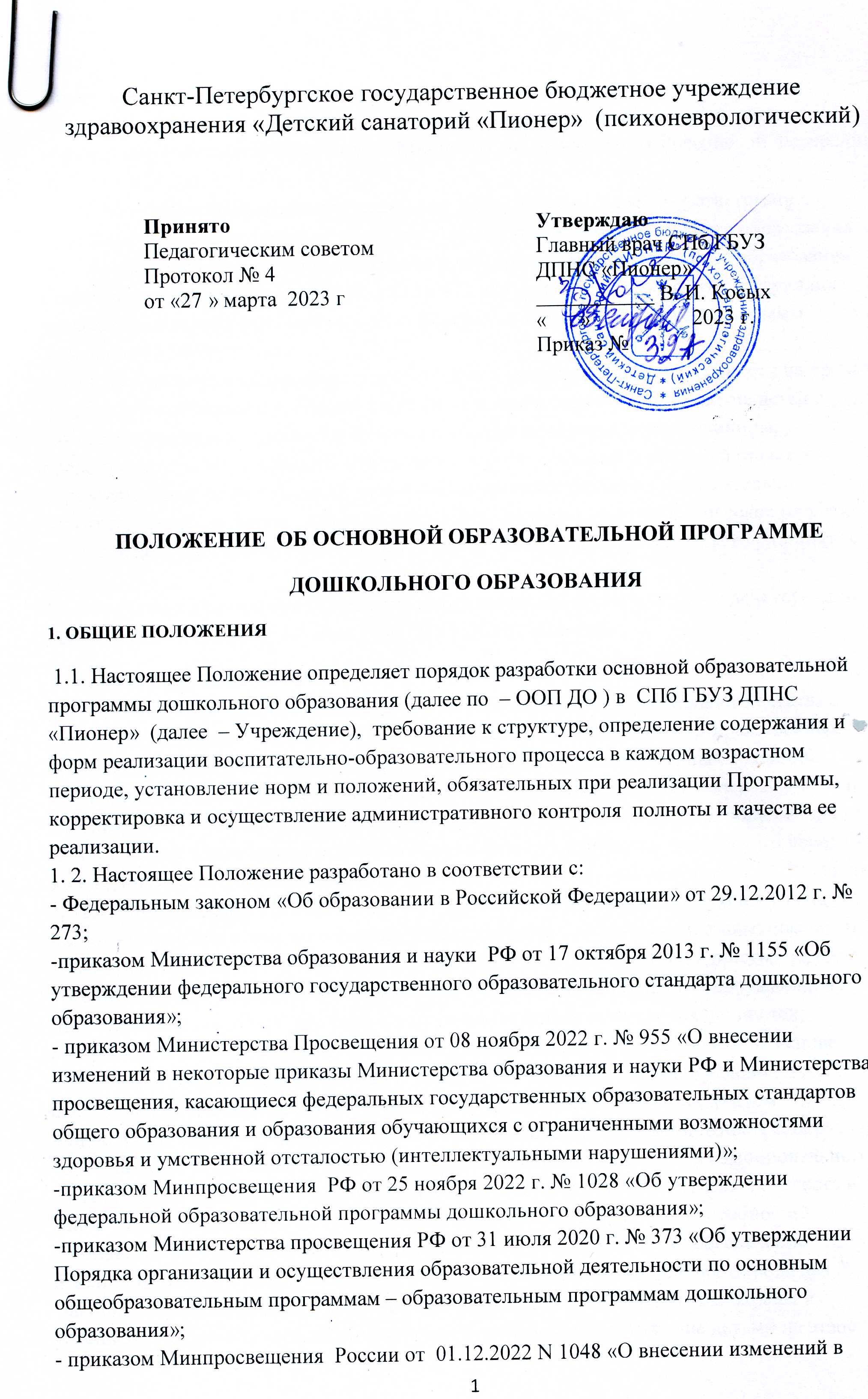 Положение о режиме занятий обучающихся образовательного структурного подразделения СПб ГБУЗ ДПНС «ПИОНЕР»
