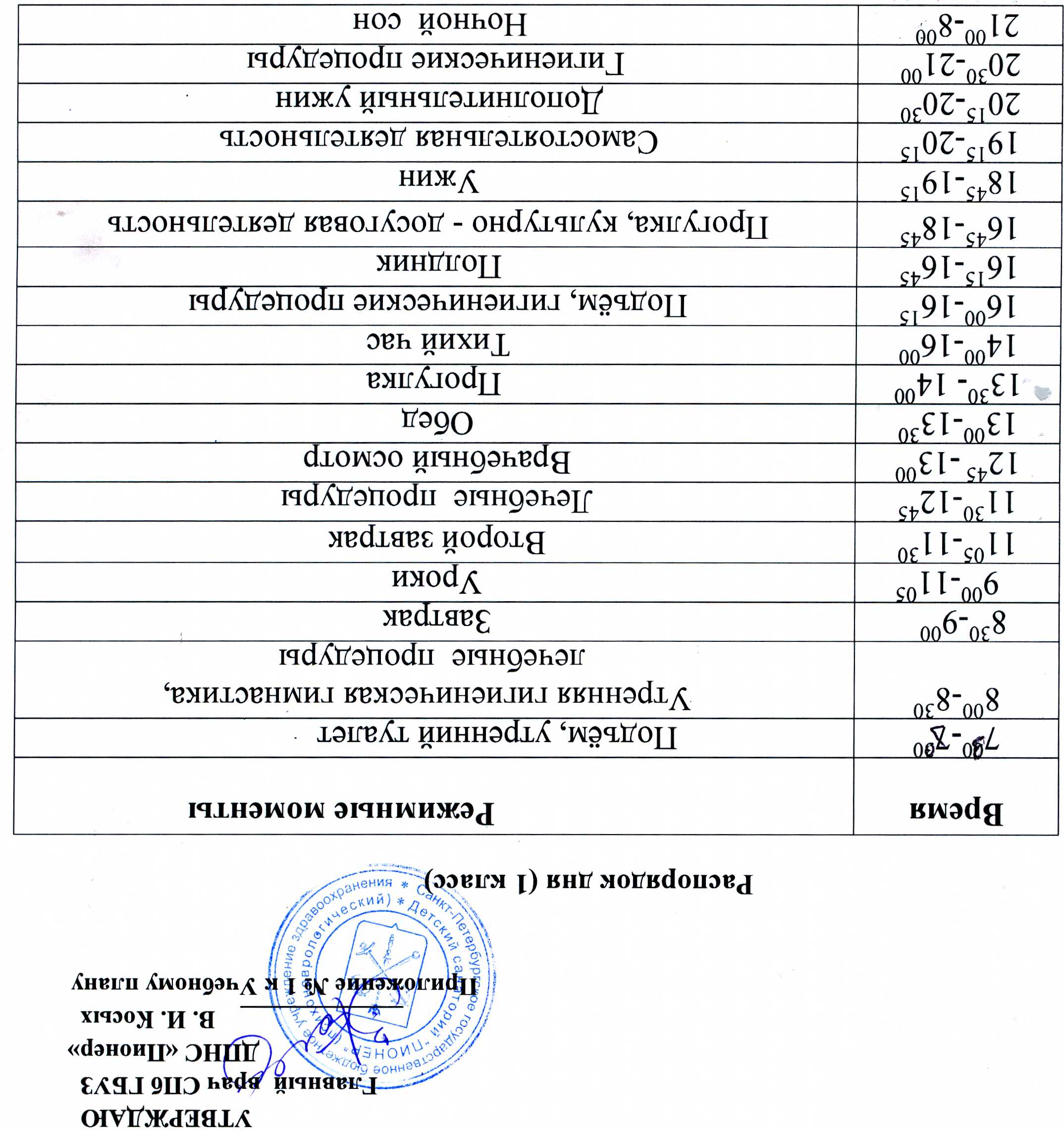 Распорядок дня школьников (1 класс)