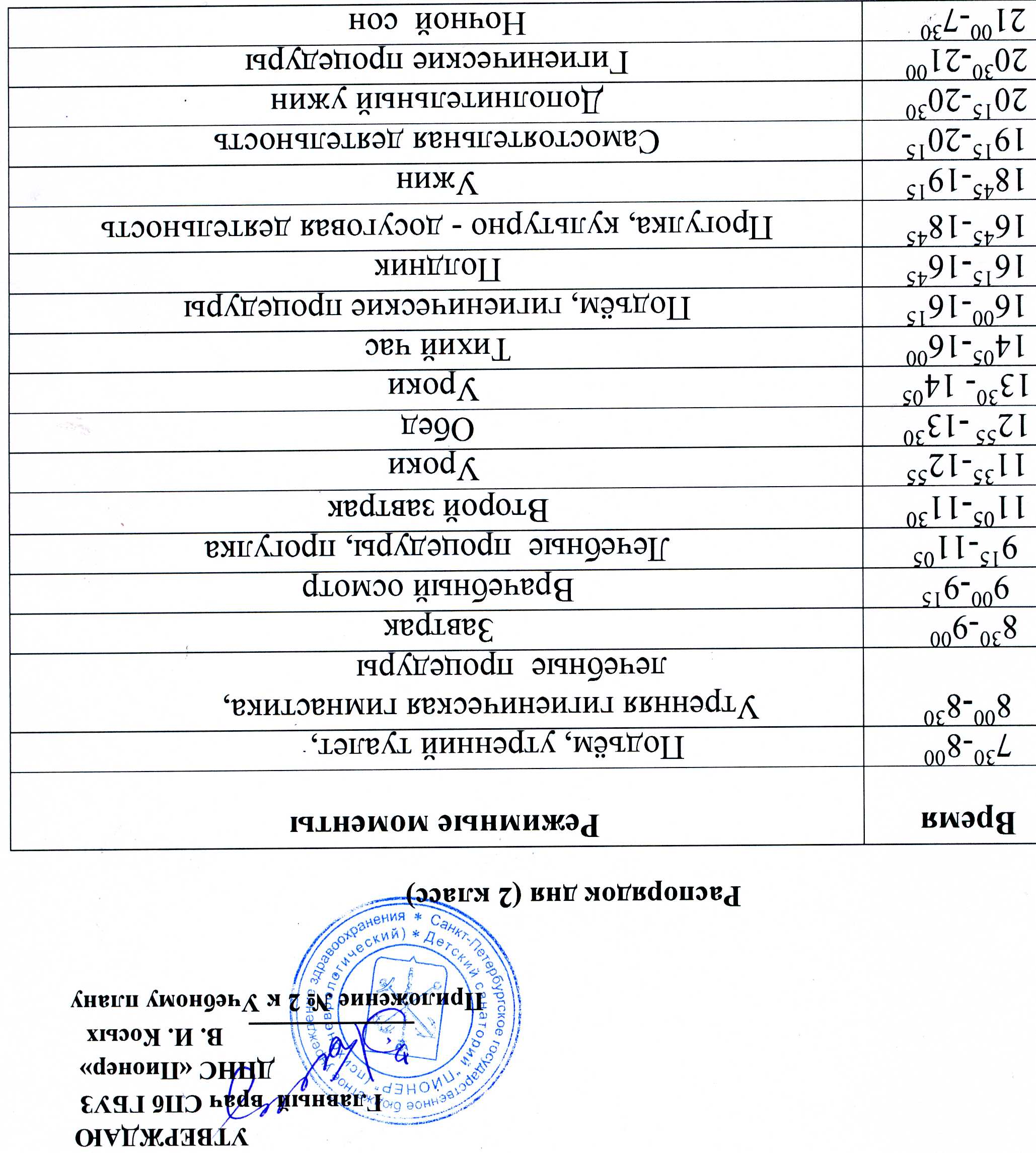 Распорядок дня школьников (2 класс)